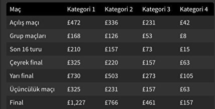 - Biletler dört kategoride satılıyor ve her kategori için fiyatlar aşağıda gösterildi. Dördüncü kategorideki biletler yalnızca Katar sakinleri için geçerli.