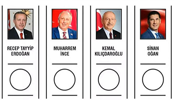 Cumhurbaşkanı adaylarının birleşik oy pusulasındaki yerlerinin belirlemesi için çekilen kurada 1. sırada Recep Tayyip Erdoğan, 2. sırada İnce, 3. sırada Kılıçdaroğlu, 4. sırada Oğan yer aldı.