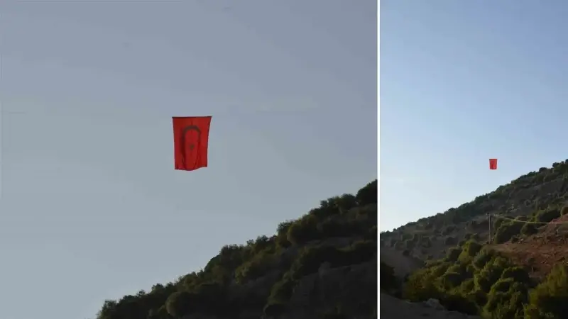 İki dağın arasında dalgalanan bayrakla asker uğurlama