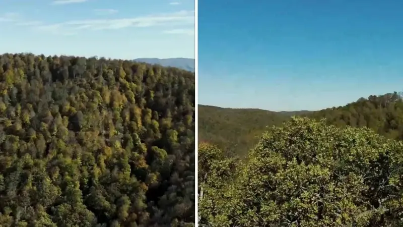 Biga’da sonbahar renklerine bürünen ormanlar havadan görüntülendi