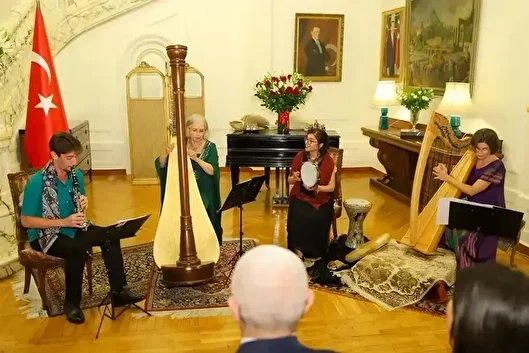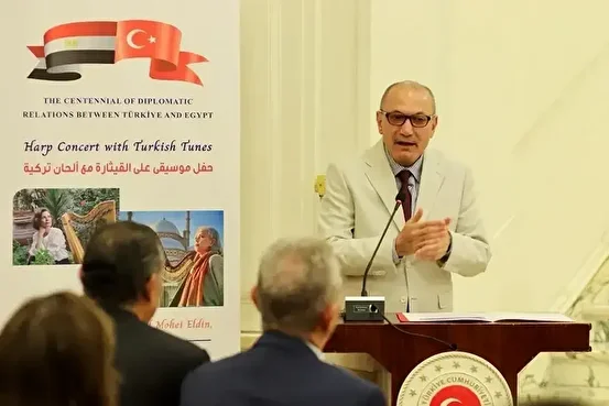 أقام فنانون أتراك ومصريون، الأحد، حفلا موسيقيا بالقيثارة في السفارة التركية بالقاهرة، احتفالا بالذكرى المئوية للعلاقات الدبلوماسية بين تركيا ومصر.