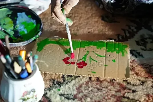 وأوضحت كذلك أنها تجمع الكراتين الملقاة بجانب حاويات القمامة أثناء رعي الأغنام لترسم عليها، وأن أقلام التلوين التي تستخدمها حصلت عليها هدايا من معارفها وأقربائها.