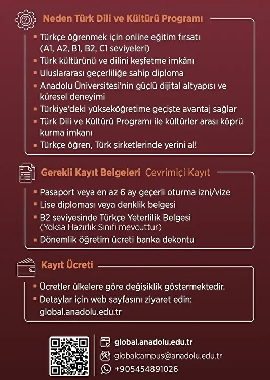 مرحبًا بكم… أهلاً بكم في عالم اللغة التركية وثقافة تركيا شهدت السنوات الأخيرة تناميًا ملحوظًا في اهتمام الدول الصديقة والشقيقة بالثقافة التركية، إلى جانب التأثير الواسع الذي حققته المسلسلات التركية في العالم العربي، مما أسهم في زيادة الإقبال على تعلّم اللغة التركية يومًا بعد يوم. إن الحضور الدولي الواسع للفنون والآداب والإنتاجات السينمائية والتلفزيونية التركية يجعل الروابط الثقافية والتاريخية العميقة بين تركيا والعالم العربي أكثر وضوحًا. ومن هذا المنطلق، قامت جامعة الأناضول بتحويل هذا الاهتمام الكبير إلى أرضية أكاديمية من خلال إطلاق برنامج دبلوم اللغة التركية وثقافتها.