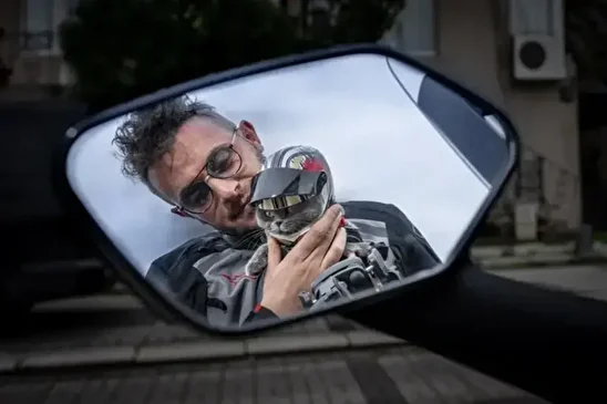 دأبت قطة في منطقة فتحية بولاية موغلا جنوب غربي تركيا، على مرافقة صاحبها على دراجته النارية مرتدية خوذتها وملابسها الخاصة لتخطف أنظار المارة.