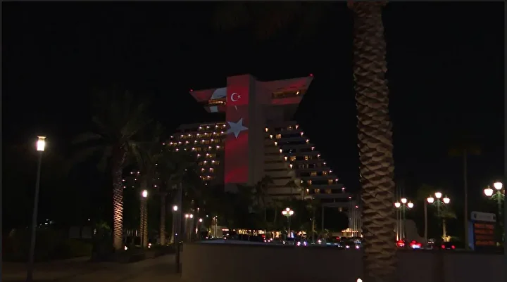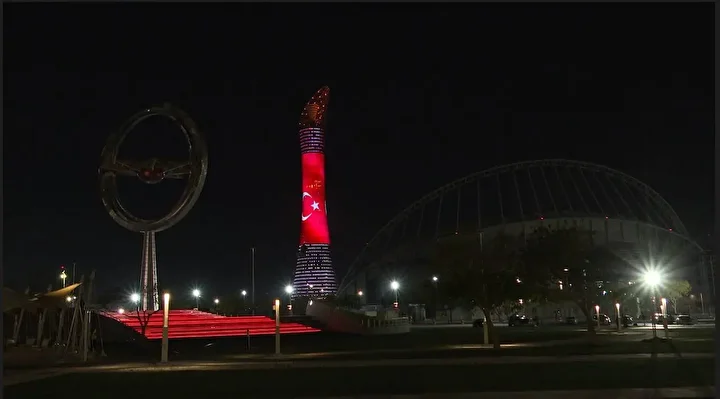 اكتست أبرز معالم العاصمة القطرية الدوحة بألوان العلم التركي، الأربعاء، احتفاء بالذكرى السنوية الـ102 لتأسيس الجهورية التركية. وذكر مراسل الأناضول، أنه من بين أبرز معالم دولة قطر التي اكتست باللونين الأحمر والأبيض بمناسبة عيد الجمهورية التركية المصادف 29 أكتوبر، أبراج الجابر، وبرج الشعلة، وفندق الشيراتون، ومستشفى ذا فيو، وبرج 18 ذي أيتين، وأبراج الفردان، ومتحف الفن الإسلامي، والمتحف الوطني القطري. وظهرت عبارات على العلم التركي، من قبيل: "يوم وطني سعيد لتركيا" و"نهنئ بالذكرى الـ102 لتأسيس الجمهورية التركية".