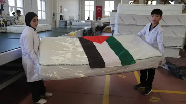 أنتج طلاب ومعلمو ثانوية مهنية في ولاية قيصري وسط تركيا، 60 سريرا مزودة بأطقم نوم، بغية إرسالها إلى قطاع غزة تعبيرا عن تضامنهم مع الفلسطينيين هناك. وتأتي هذه الخطوة في إطار مبادرة أطلقها طلاب ومعلمو مدارس مهنية بالتعاون مع اتحاد أرباب العمل في صناعة النسيج التركي، بهدف المساهمة في تخفيف معاناة المتضررين من الحرب في غزة.
