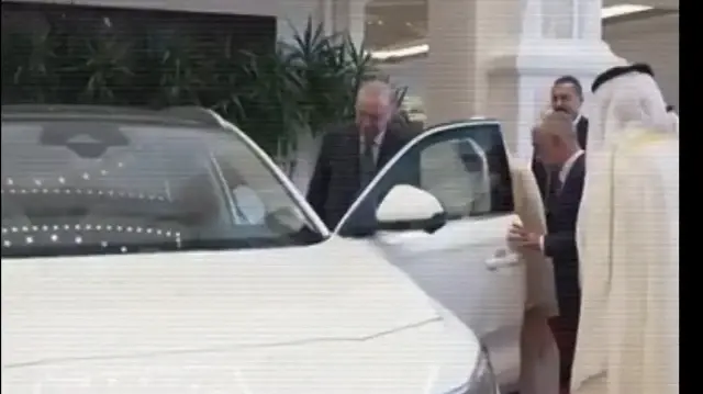 فيديو يُظهر قيام الرئيس التركي رجب طيب أردوغان بإهداء سيارة “توغ” الكهربائية محلية الصنع لأمير الكويت الشيخ مشعل الأحمد الجابر الصباح، ولسلطان عُمان هيثم بن طارق، وذلك خلال جولته في دول الخليج.