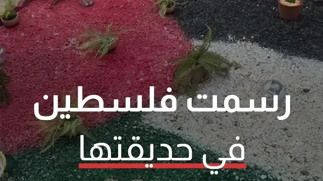 شاب يشارك متابعيه فرحته بتضامن والدته مع فلسطين، بعد أن شكّلت العلم الفلسطيني بالحجارة الملوّنة في حديقة المنزل.