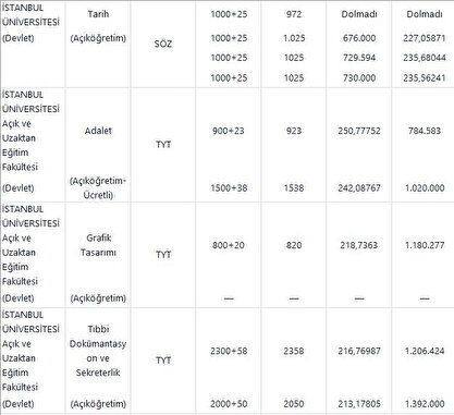 Tercihini açıköğretim bölümlerinden yana kullanacaklar ÖSYM ile İÜ Açıköğretim AUZEF bölümleri taban – tavan puanları ve başarı sıralamalarını sorguluyor. İşte, AUZEF İstanbul Üniversitesi açıköğretim taban puanları...
