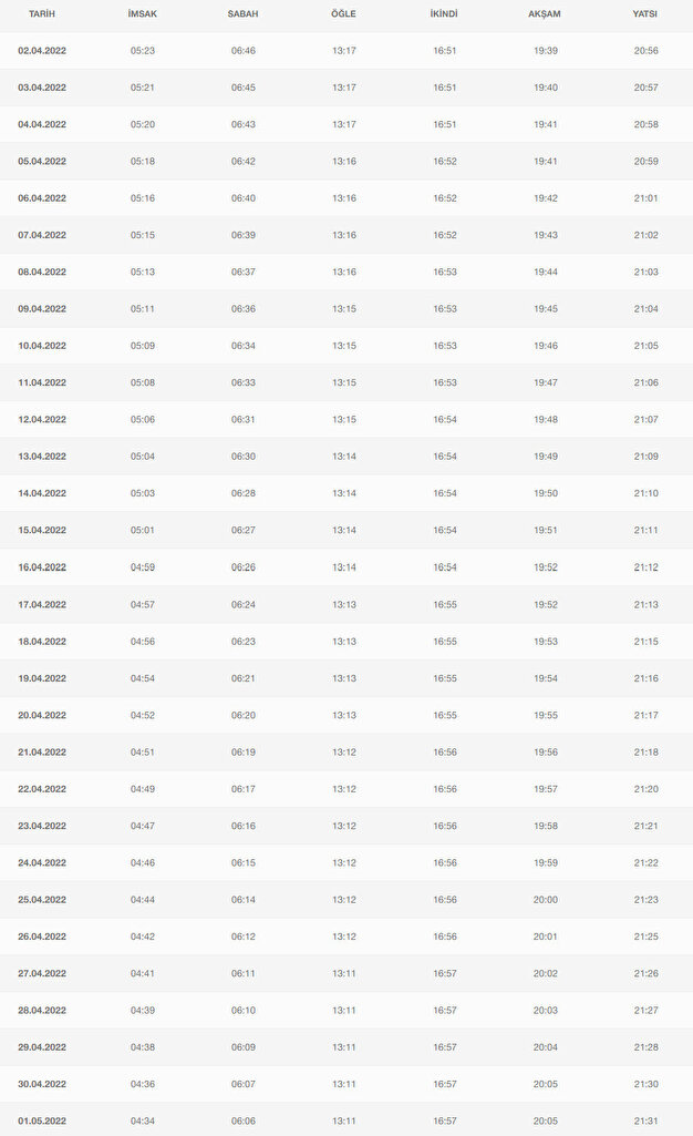 Aydın sahur ve iftar vakti Ramazan ayının gelmesi ile Aydın'da yaşayan Müslüman vatandaşlar tarafından araştırılmaya başlandı. Bu gece Müslüman alemi oruç tutmak için ilk sahura kalkacaklar. Kardeşlik, dayanışma ve paylaşma ayı olan ramazan boyunca oruç tutulacak, teravih namazı kılınacak. Aydın imsakiyesi her yıl olduğu gibi bu yıl da Diyanet'in belirlediği takvime göre düzenlendi. İşte Aydın iftar vakti, Aydın Sahur vaktini de içeren Aydın 2022 imsakiyesi...