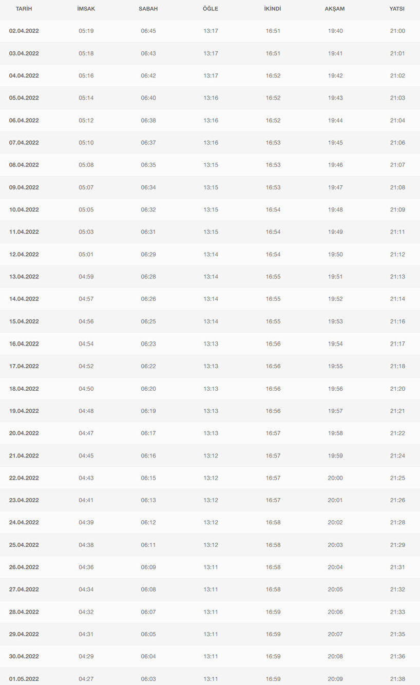 Ramazan ayı 2 Nisan 2022 Cumartesi günü başlayacak ve 2 Mayıs 2022 Pazartesi günü sona erecek.