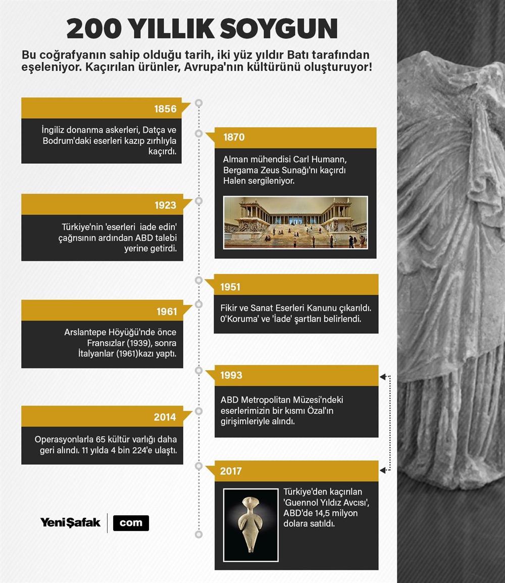 Yaklaşık 200 yıl önce, ülkemizdeki tarihi eserlerin çalınarak çeşitli ülkelerde alınıp-satıldığı ve sergilendiği biliniyor. Bu kapsamda ilk örnekler, gezgin, asker ve arkeologların Batı'dan gelerek buradaki eserleri kaçırdığı yönündeki olaylarda görülüyor. 1800'lü yılların ikinci yarısından itibaren Fransız, Alman ve İngiliz askerlerininin özellikle Ege bölgesindeki tarihi eserleri kazılar sonucu kaçırdığı bilinen gerçeklerden.