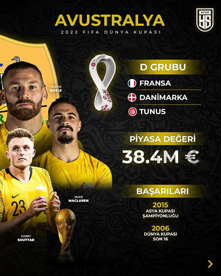 Katar'ın ev sahipliği yapacağı 2022 FIFA Dünya Kupası'na katılacak Avustralya Milli Futbol Takımı, 5'i üst üste olmak üzere 6. kez bu turnuvada mücadele edecek