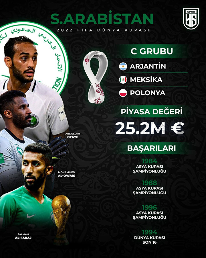 - Suudi Arabistan Dünya Kupası tarihindeki en büyük başarısını 1994’te son 16 turuna kalarak gerçekleştirdi.