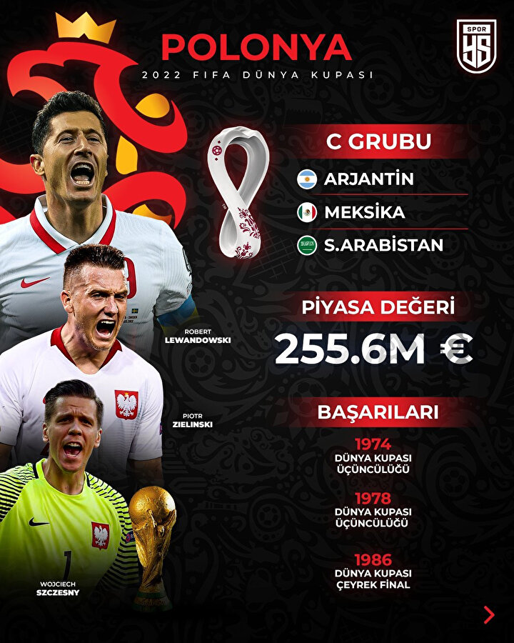 - Dünya Kupası’nda daha önce iki kez üçüncülük yaşayan Polonya, katıldığı son 3 turnuvada ise gruplardan çıkamadı.