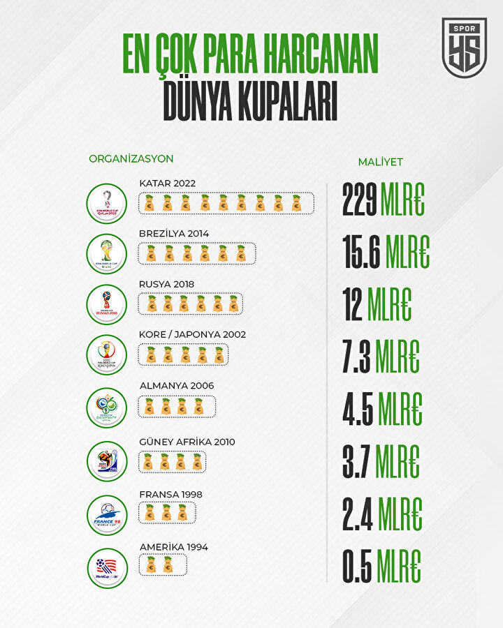 - İş dünyasının prestijli dergilerinden Forbes'in haberinde ise Katar'ın Dünya Kupası'na ev sahipliği yapmak için harcadığı tahmini meblağın 229 milyar doları bulduğu ifade edildi.