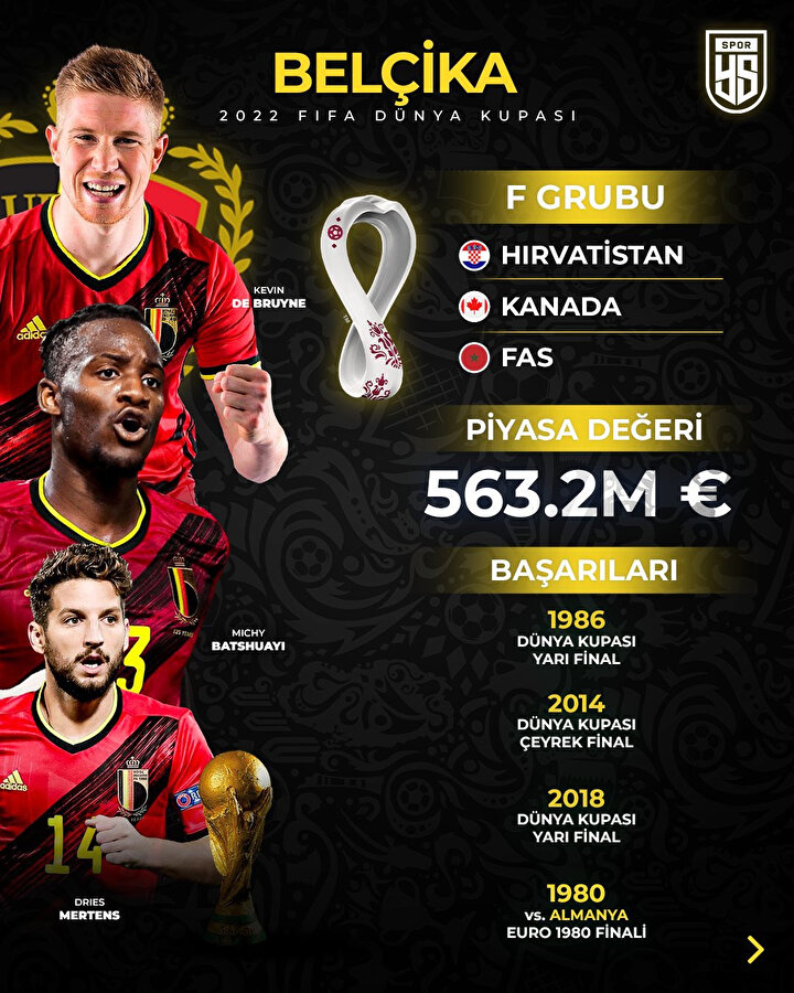 - F Grubu:Belçika, Kanada, Fas, Hırvatistan