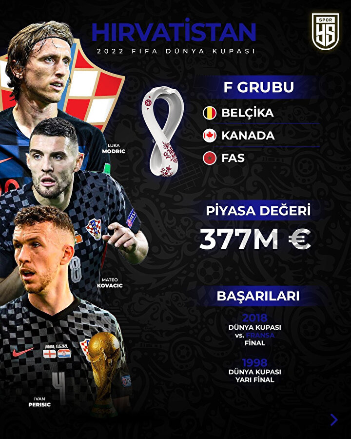 Katar'ın ev sahipliği yapacağı 22. FIFA Dünya Kupası'nda mücadele edecek son Dünya Kupası finalisti Hırvatistan, tarihinde 6. kez finallere katılma başarısını gösterdi.