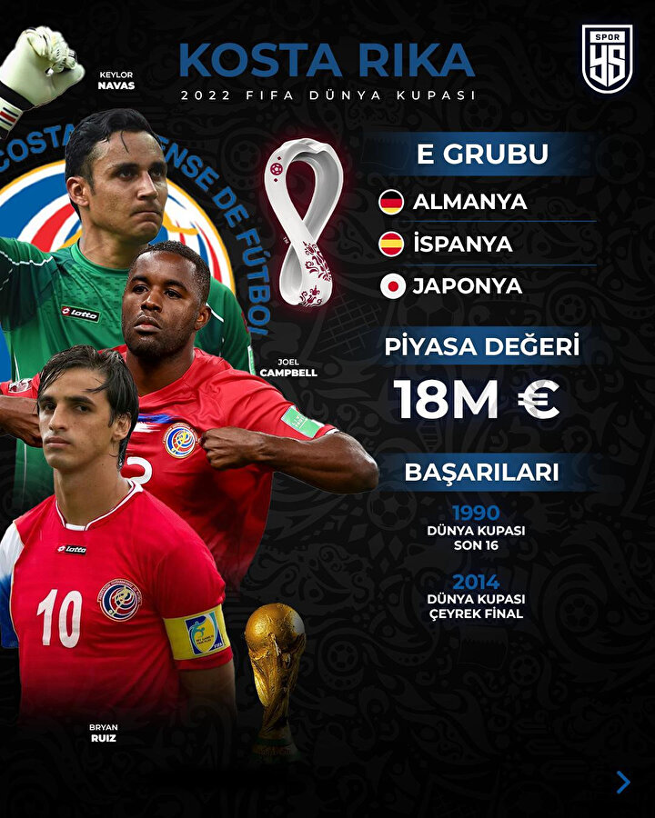 Katar'ın ev sahipliği yapacağı 2022 FIFA Dünya Kupası'nda mücadele edecek Kosta Rika Milli Futbol Takımı, turnuvada 6. kez sahne alacak.