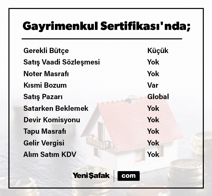 Gayrimenkul sertifikası sayesinde ev almak ya da yatırım yapmak isteyen kişinin borçlanmasına gerek kalmıyor. Vatandaş bütçesine göre projelerde pay alarak yatırımcı olabiliyor.