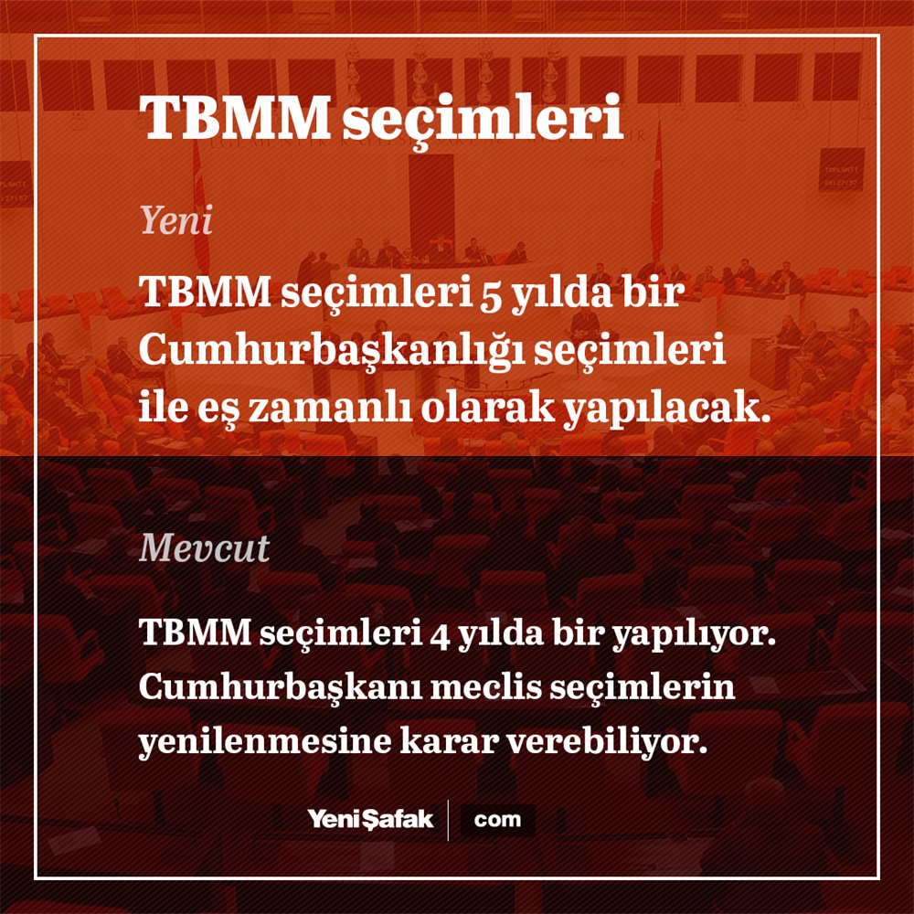 - Türkiye Büyük Millet Meclisi ve Cumhurbaşkanlığı seçimleri beş yılda bir aynı günde yapılır.
