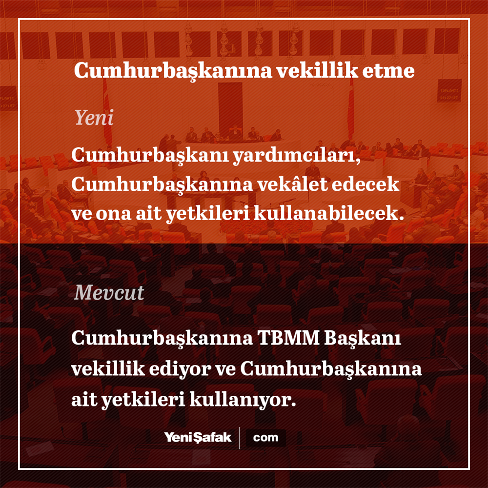 - B) Bu Kanunun yayımı tarihinden itibaren en geç altı ay içinde Türkiye Büyük Millet Meclisi, bu Kanunla yapılan değişikliklerin gerektirdiği Meclis İçtüzüğü değişikliği ile diğer kanuni düzenlemeleri yapar.Cumhurbaşkanlığı kararnamesiyle düzenleneceği belirtilen değişiklikler ise Cumhurbaşkanının göreve başlama tarihinden itibaren en geç altı ay içinde Cumhurbaşkanı tarafından düzenlenir.