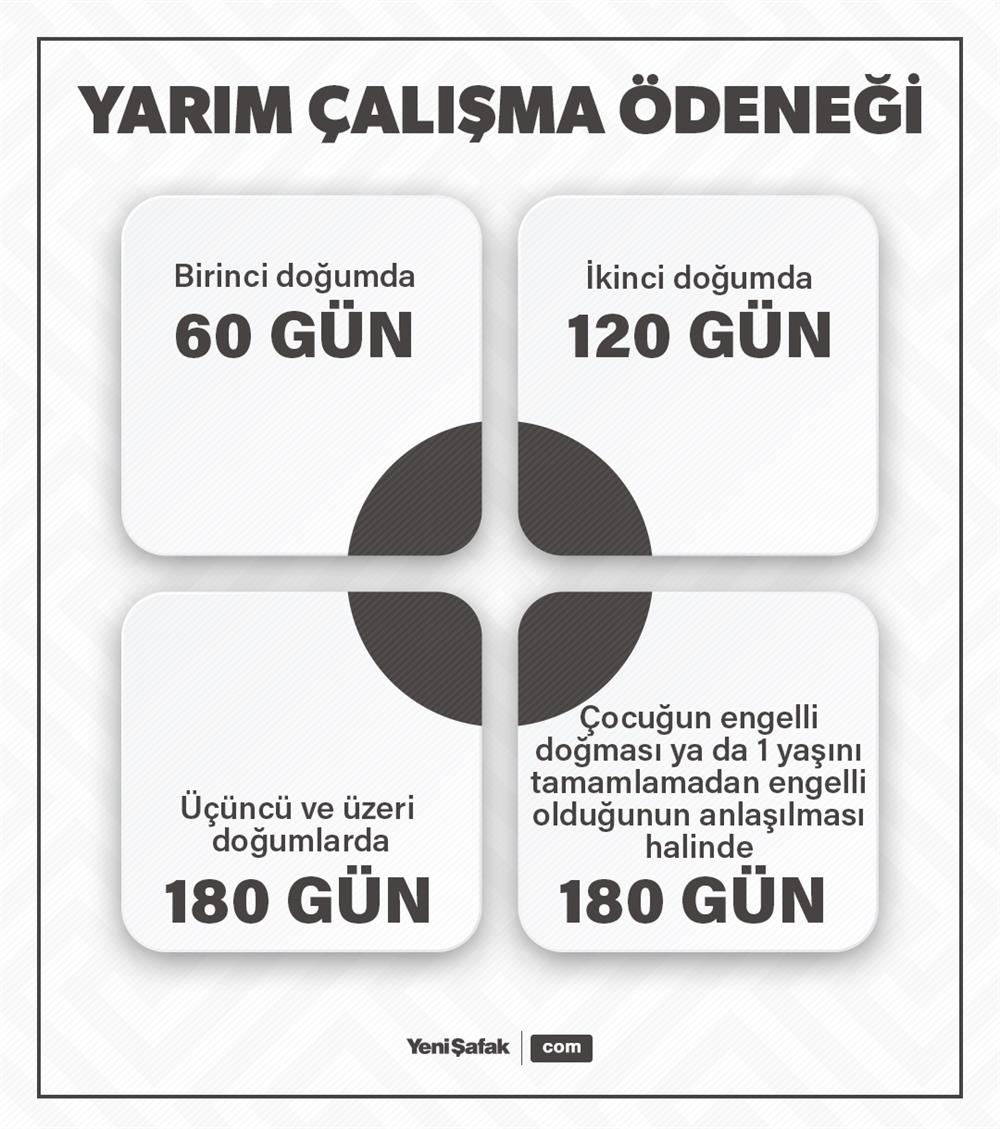 - Yarım çalışma ödeneği, çocuğun hayatını kaybetmesi ve/veya evlatlık halinin ortadan kalkması gibi durumlarda, olayın vuku bulduğu tarihi izleyen tarih itibariyle durdurulur.