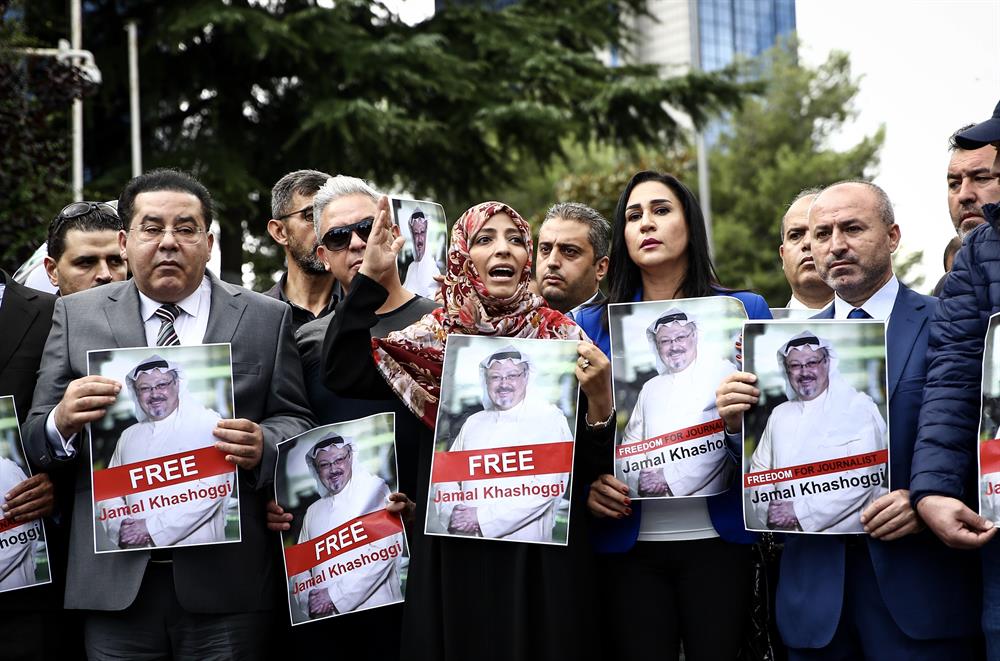 - Suudi Arabistan Başkonsolosluğu önüne gelen sivil toplum kuruluşları temsilcileri,Cemal Kaşıkçı'nın kaybolmasının “insanlık suçu” olduğunu belirtti.