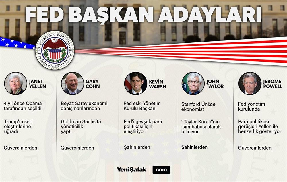 FED Başkanı Janet Yellen’in görev süresi Şubat 2018’de sona eriyor. Ancak yeni FED başkanının kim olacağına yönelik söylentiler aylardır gündemdeki yerini koruyor. Trump’ın 3 Kasım’da açıklayacağı isim, FED’in politikalarında önemli bir yer teşkil edecek.
