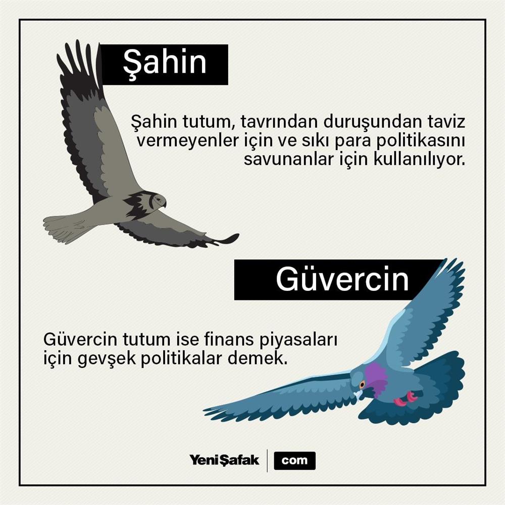 Şahin kelimesi konuşma dilinde agresif ve saldırgan anlamlarını çağrıştırmakla beraber sıkı para politikasını savunanları ifade ederken, gevşek para politikasını savunanlara ise güvercin denilmektedir.