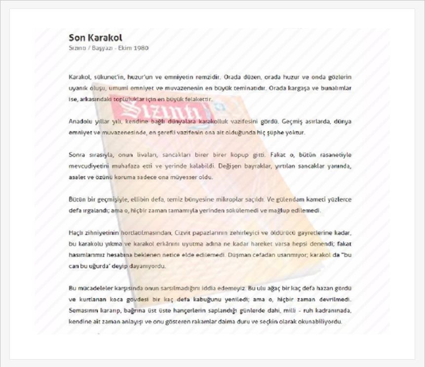 FETÖ elebaşı Gülen'in 1960’lı yılların koşullarında henüz 20 yaşındayken devlet üzerine kirli planlar kurduğu anlaşılıyor. Gülen bu düşüncelerini bir konuşma sırasında da açık ediyor: "Senin iktidar dediğin şey nedir, 20 yaşında ben onu devireceğimi yerine başkasını kuracağımı planlamış insanım." 80 darbesinden sonra da FETÖ devlet üzerine kurduğu 'paralel' planların derecesini artırıyor. Resmi kurum kadrolarında örgüt mensupları sistemli bir şekilde yer bulmaya başlıyor. 28 Şubat 1997'ye gelindiğinde de FETÖ'nün izleriyle karşılaşılıyor. Sızıntı'daki başyazıda Gülen darbecilere methiyeler düzüyor: "Ümidimizin tükendiği yerde, Hızır gibi imdadımıza yetişen Mehmetçiğe bir kere daha selam duruyoruz." FETÖ'nün 15 Temmuz'daki darbe girişimi de bu sürecin son örneği olarak gözler önünde.