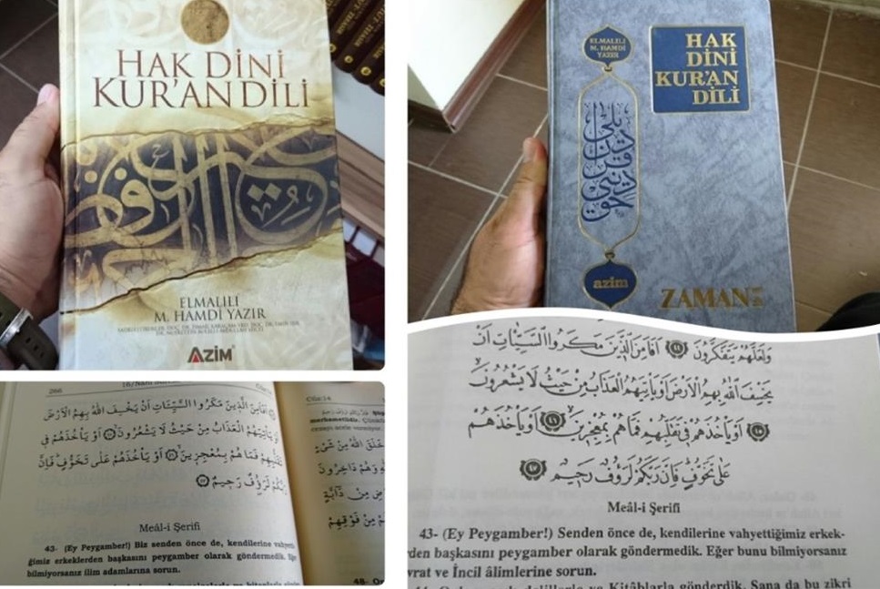 İslami ölçülerin sunulmasında FETÖ'nün kendi lehine tanımlamalar yaptığı, çıkarları doğrultusunda Kur'an'ı manipülasyonlara uğrattığı belgelerde yer alıyor. FETÖ'nün eski gazetesi Zaman'ın Elmalılı Hamdi Yazır'ın Diyanet İşleri Neşriyatı'ndan yayınlanan 'Hak Dini Kur'an Dili' tefsirinin sadeleştirilmiş hali üzerinde oynadığı ortaya çıktı. Azim Yayınları tarafından sadeleştirilmiş hali basılan kitapta, Nahl suresinin 43. ayeti, "(Ey Peygamber!) Biz senden önce de, kendilerine vahyettiğimiz erkeklerden başkasını peygamber olarak göndermedik. Eğer bilmiyorsanız ilim adamlarına sorun" şeklinde Türkçe'ye çevrilmiş olmasına rağmen 'İlim adamları' ifadesinin 'Tevrat ve İncil alimleri' yazılarak tahrip edildiği görüldü.