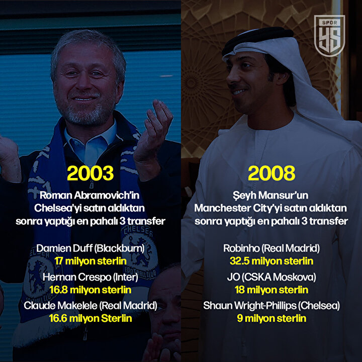 Roman Abramoviç 2003 yılında Chelsea’yi satın aldığı zaman lüks transferler yaptı. Inter’den 16.8 milyon sterlin karşılığında Crespo’yu, Real Madrid’den 16.6 milyon sterlin karşılığında Makelele’yi adlı. Sadece bu isimleri değil Joe Cole, Adrian Mutu, Damien Duff gibi oyuncuların da bulunduğu 10 transfer yaptı ve 111.3 milyon sterlin harcadı.