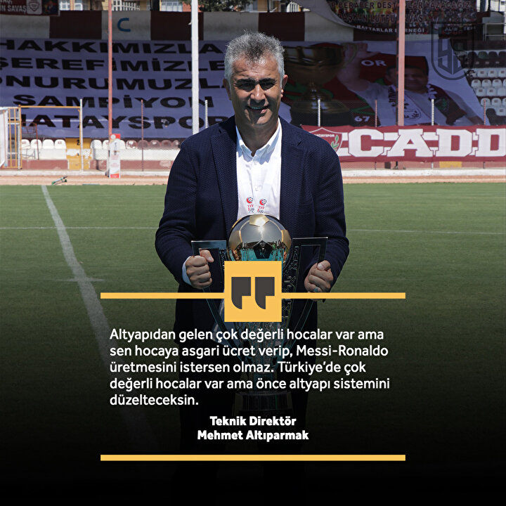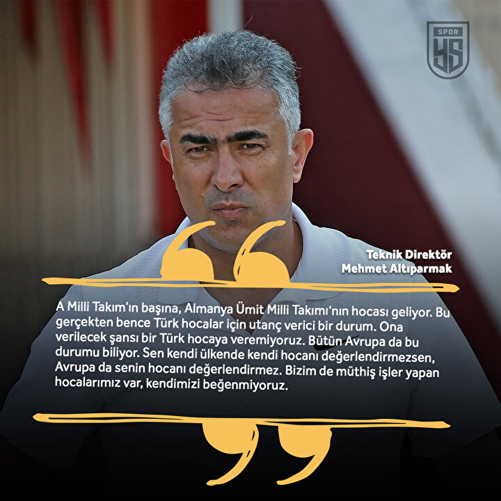 TD Mehmet Altıparmak: “Oyuncu gönderiyoruz ama bir elin parmaklarını geçmiyor. Brezilya’ya bakın bir de. O kadar çok oyuncu üretip yolluyorlar ki sayamazsınız orada. Bizim oralara hem oyuncu hem teknik direktör göndermemiz için, öncelikle ülke puanına, başarısına ihtiyacımız var. Çünkü insanlar şunu görüyorlar; mesela bir İngiliz bir Alman bir İspanyol bir Portekiz hoca neden revaçta? Çünkü dünyada bir sıralama yapsan ilk 5’te, ilk 10’da bu ülkelerin takımlar var. İnsanlarda doğal olarak orayı tercih ediyor. Biz önce hem ülke olarak hem takım olarak başarı istikrarını sağlayacağız. Sonra Avrupa’ya futbolcu göndereceğiz. Onlar bizi iyi temsil edince sıra hocalara gelecek. İnşallah arkadan gelen neslin ben bunu başaracağına yürekten inanıyorum ama önce ülke olarak başarı kazanman lazım.