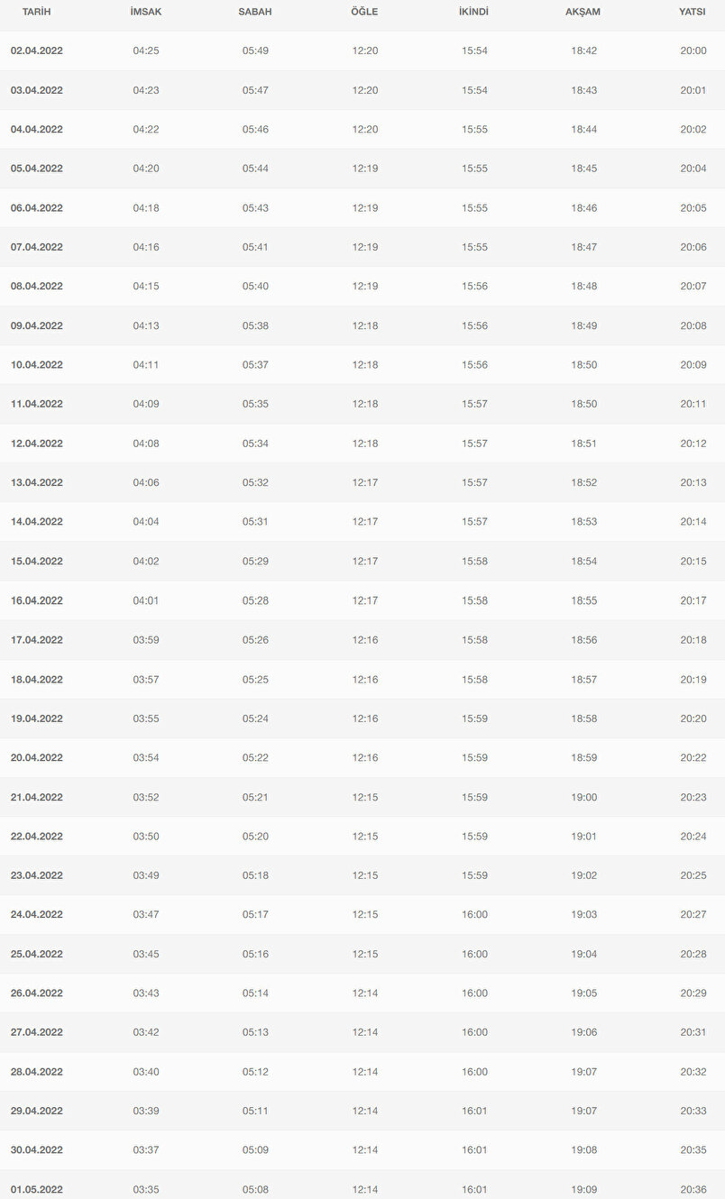 Ramazan ayı 2 Nisan 2022 Cumartesi günü başlayacak ve 2 Mayıs 2022 Pazartesi günü sona erecek.