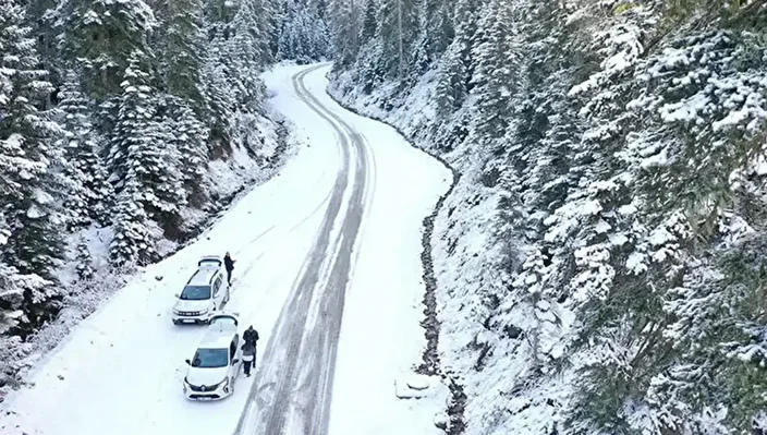 Bolu'nun yüksek kesimlerinde gece saatlerinde kar yağışı etkili oldu. Sabah, kar yağışı etkisini kaybederken yaylalar ve çam ormanları beyaz örtüyle kaplandı.