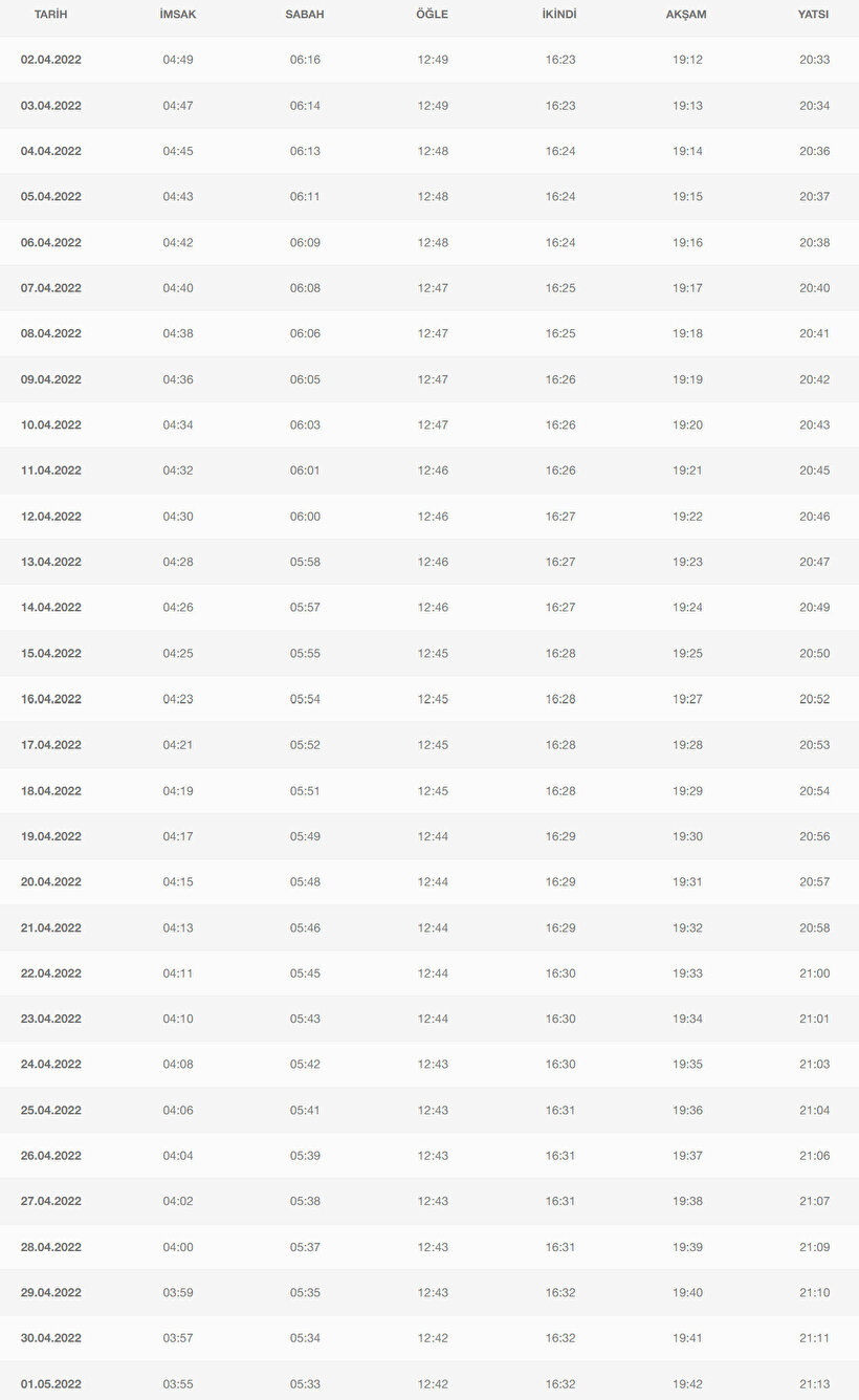 Ramazan ayı 2 Nisan 2022 Cumartesi günü başlayacak ve 2 Mayıs 2022 Pazartesi günü sona erecek.