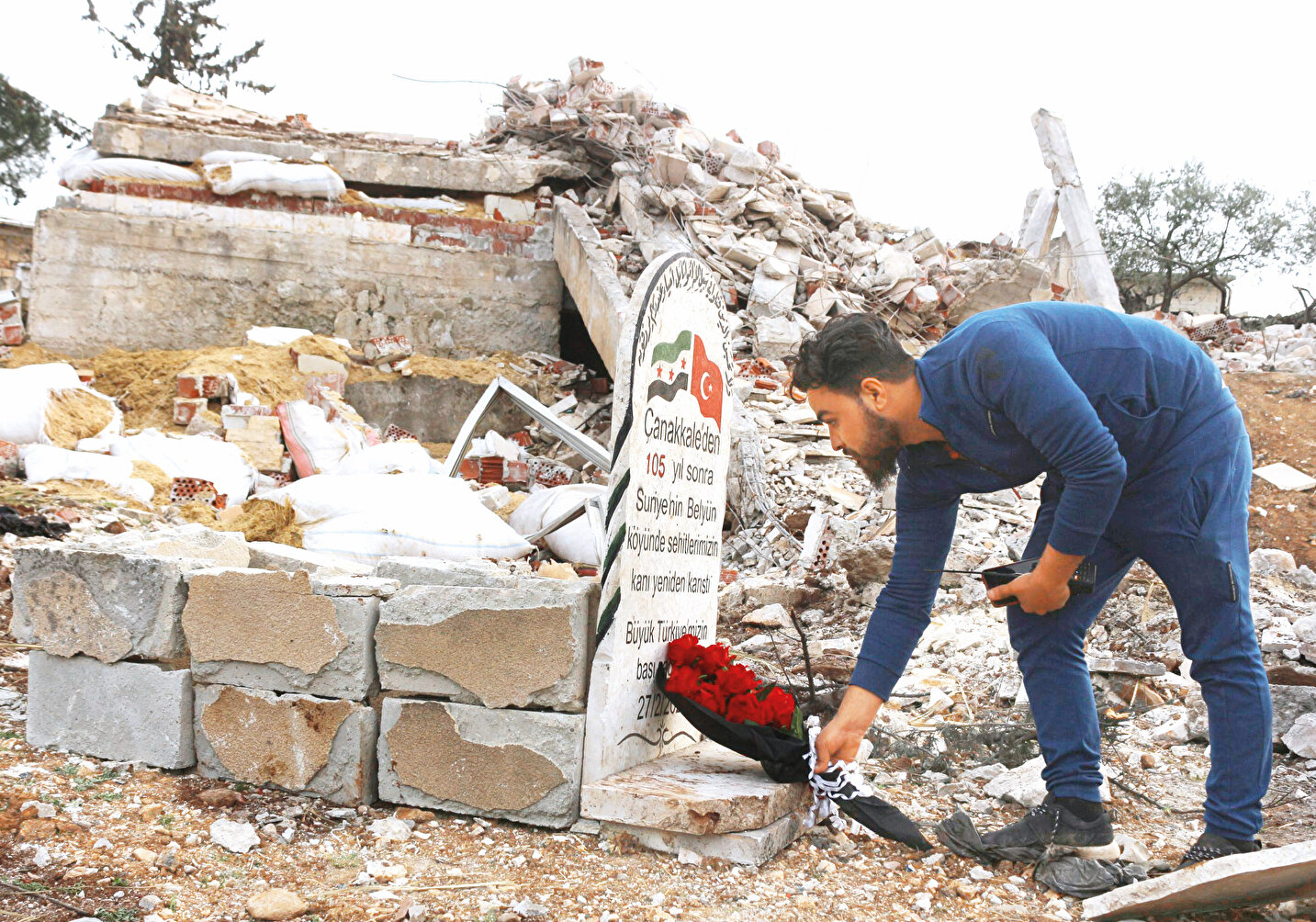 Esed rejiminin saldırılarında şehit düşen Mehmetçikler, Türk halkı kadar, tek umudu Türkiye olan Suriye halkını da derinden üzdü. İdlib’in güneyindeki Belyun köyünde gençler 36 askerimizin şehit edildiği yere yürek yakan bir öykü ile anıt dikti. İdlibli 7 genç, 27 Şubat’ta Esed rejiminin saldırısında şehit düşen 36 askere vefasını göstermek için bir adım atmak istedi. Girişime öncülük eden isimlerden 33 yaşındaki Ahmed Bessam el-Ömer, Çanakkale’de şehit olan İdliblilerin adının yazılı olduğu anıtı örnek gösterdi ve “Çanakkale Savaşı’nda en az 125 İdlibli şehit oldu. Bugün ise 36 Türk askeri İdlib’de şehit oldu. Türkler bizim için anıt yaptı, biz de onlara yapalım” diyerek harekete geçti.