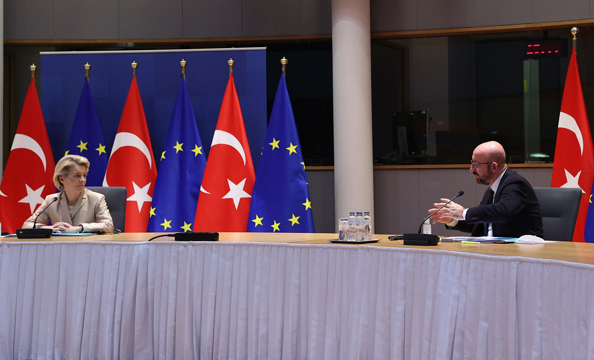 Avrupa Birliği (AB) Konseyi Başkanı Charles Michel ve AB Komisyonu Başkanı Ursula von der Leyen ile Cumhurbaşkanı Recep Tayyip Erdoğan arasında yapılan görüşmede, Doğu Akdeniz, Kıbrıs, Türkiye-AB ilişkileri, Türkiye'deki Suriyelilerin durumu ve bölgesel konuların değerlendirildiği, ayrıca AB liderlerinin olası Türkiye ziyaretlerinin ele alındığı bildirildi.