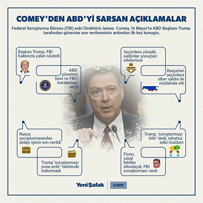 ABD Başkanı Donald Trump, yönetiminde yer almış bazı isimlerin Rusya bağlantıları ile iglili iddiaları soruşturan Federal Soruşturma Bürosu'nun (FBI) Başkanı James Comey'i görevden aldı.