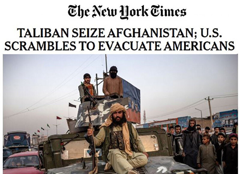 New York Times, Kabil'in hızlı düşüşünün ardından Afganistan'da 20 yıllık ABD döneminin sona erdiğini yazdı. Taliban'ın hızlı kazanımlarının "şok edici" olduğu kaydedildi. Cumhurbaşkanı Eşref Gani'nin ülkeden ayrıldığı bilgisine yer verildi.
