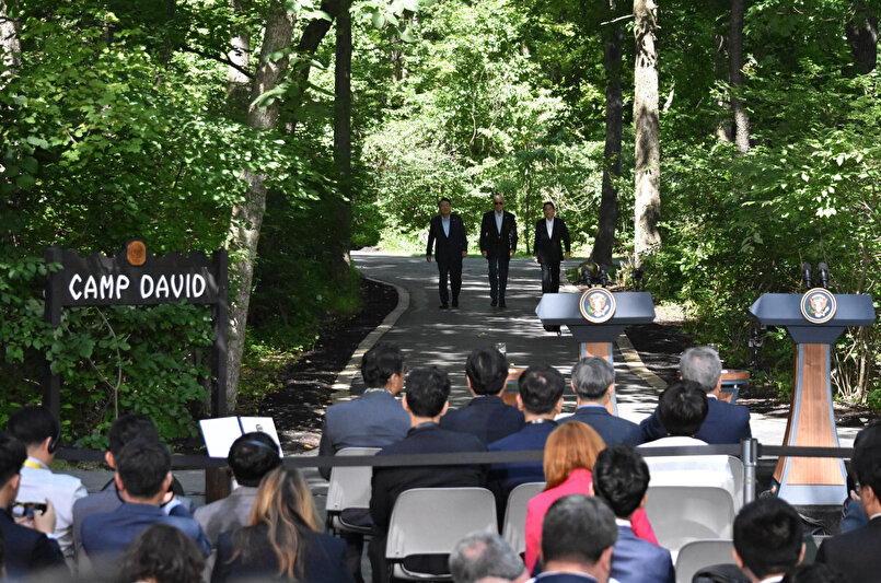ABD Başkanı Joe Biden, Japonya Başbakanı Fumio Kishida ve Güney Kore Devlet Başkanı Yoon Suk Yeol ABD’nin Maryland eyaletindeki Camp David yerleşkesinde üçlü bir zirve gerçekleştirdi. Kritik zirvede ABD Başkanı Joe Biden, Japonya Başbakanı Fumio Kishida ve Güney Kore Devlet Başkanı Yoon Suk Yeol, güvenlik dahil birçok alanda işbirliğini derinleştirme konusunda mutabık kaldı. Liderler, üçlü ilişkilerde "yeni bir dönemin" başladığını ilan etti.