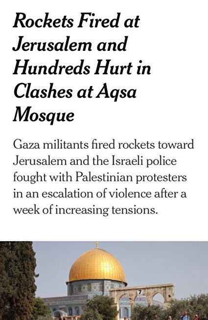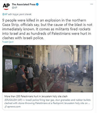 İşgalci İsrail kuvvetlerinin Filistinlilere yönelik şiddeti her geçen gün daha da artıyor. Son olarak Mescid-i Aksa'daki cemaate saldıran işgalciler, bugün de savaş uçakları ile masum sivilleri hedef aldı. Saldırılarda 9'u çocuk 20 kişi şehit oldu. Olayı okuyucularıyla paylaşan Amerikan medyası ise, hava saldırılarını "nedeni bilinmeyen bir patlama" olarak duyurdu.