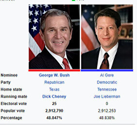 Aradaki farkın çok düşük olmasından dolayı seçim uzun süre mahkemeden onaylanmayı beklemiş en sonunda Yüksek Mahkeme, Bush lehine karar verince 8 yıllık bir Cumhuriyetçi Parti iktidarı başlamıştı.