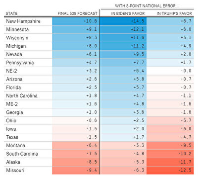 Trump’ın Florida konusundaki avantajı ise başkanın Floridalı olması. Bunun büyük bir etkisi olması ihtimali çok yok. 2016 seçimlerinde Donald Trump, Hillary Clinton’a karşı sadece 13 bin oy fark ile eyaleti kazanmıştı. İki partinin oy oranları şu şekildeydi: Cumhuriyetçi Parti yüzde 48.6 oy alırken Demokrat Parti yüzde 47.4 oy almış, milimetrik farklar seçimin kaderini tayin etmişti.
