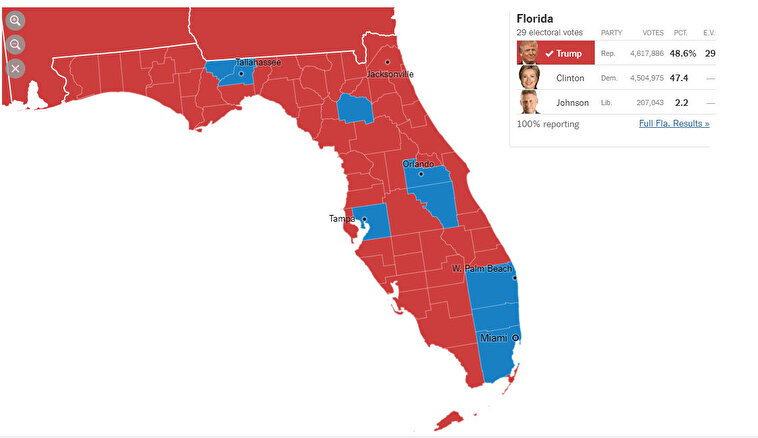 Florida hem başkanlık seçimlerinde ana belirleyici eyaletlerden birisi olması açısından hem de 29 temsilciyi meclise göndermesi ile çok önemli bir bölge. Eyaleti alanın başkanlığı da aldığı bilindiği için başkan adaylarının stratejilerinde çok önemli yer tutuyor.