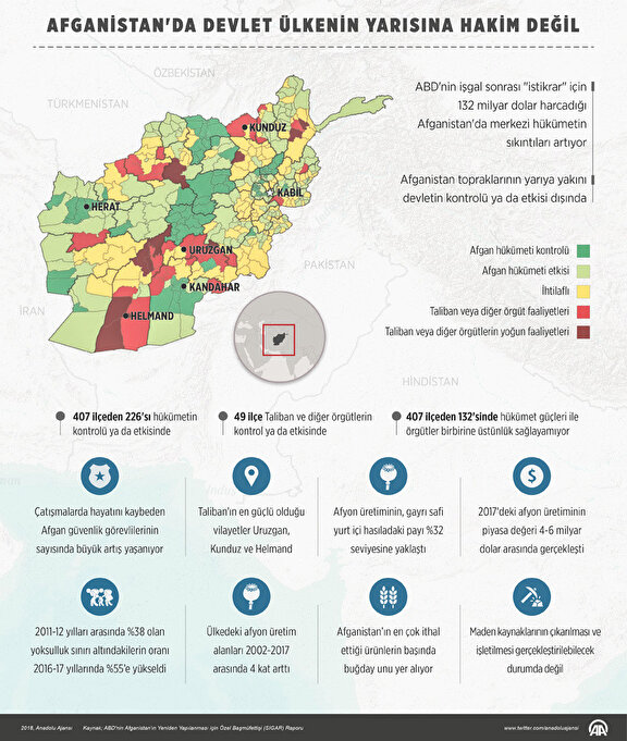 ABD'nin 11 Eylül 2001 saldırılarının ardından işgal ettiği ve 18 yıldır operasyonlarına devam ettiği Afganistan'da 14 bin Amerikan askeri bulunuyor. Bunların yarısı Afgan güvenlik güçlerini eğiten düzenli birlikler. Diğerleri Kaide ve DAEŞ'e operasyon düzenleyen Amerikan Özel Operasyonlar Güçleri'nden.