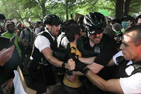 - Polis, "adalet yoksa huzur yok" sloganları atan yüzlerce göstericinin, Beyaz Saray'ın önündeki "La Fayette" parkındaki demir parmaklıklara yaklaşmasına izin vermeyince arbede yaşandı.