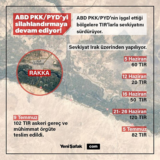 ABD, şubat başında ve sonunda olmak üzere iki kez, yaklaşık 300 tırla Irak sınırından YPG/PKK işgalindeki bölgeye sevkiyat yapmıştı.