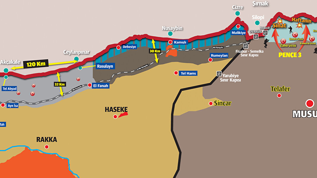 Türkiye sınırında ABD zırhlılarının yeniden görülmesiyle birlikte Barış Pınarı Harekâtı'nın Soçi'deki anlaşmaya binaen Kamışlı doğusuna genişlemesi bekleniyor. Mehmetçik, operasyonları sözkonusu bölgeye doğru genişletirse ABD'nin Suriye'deki teröristlere ikmal hattı büyük darbe yemiş olacak. Ankara, PKK'nın 30 kilometre güneye çekilmesi için ABD Başkan Yardımcısı Mike Pence ile '120 saat' anlaşması yapmış, ardından Rusya'ya da aynı şartlarda 150 saatlik süre verilmişti. Mutabakatlar sonrası önce ABD tarafı, teröristlerin çekildiğini iddia etmiş, ardından Kremlin de PKK'nın sınır bölgesini boşalttığını savunmuştu. Ancak sahadaki durum tam tersi gelişmelere işaret ediyor. Fırat'tan Irak sınırına dek tünel-mevzi kazmaya devam eden PKK'lılar, Ayn el-Arab, Dırbesiye, Amude, Kahtaniye ve Malikiye'de rejim üniformaları giyerek kendilerini legalleştirmeye çalışıyor. Bu oyunu sahada Rusya da destekliyor.